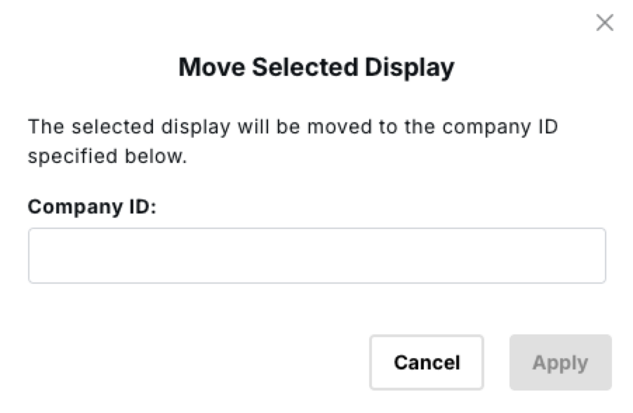 - Enter the Company ID of the Company you want to move the Display(s) to in the Move Selected Display dialog (Find Your Company ID)