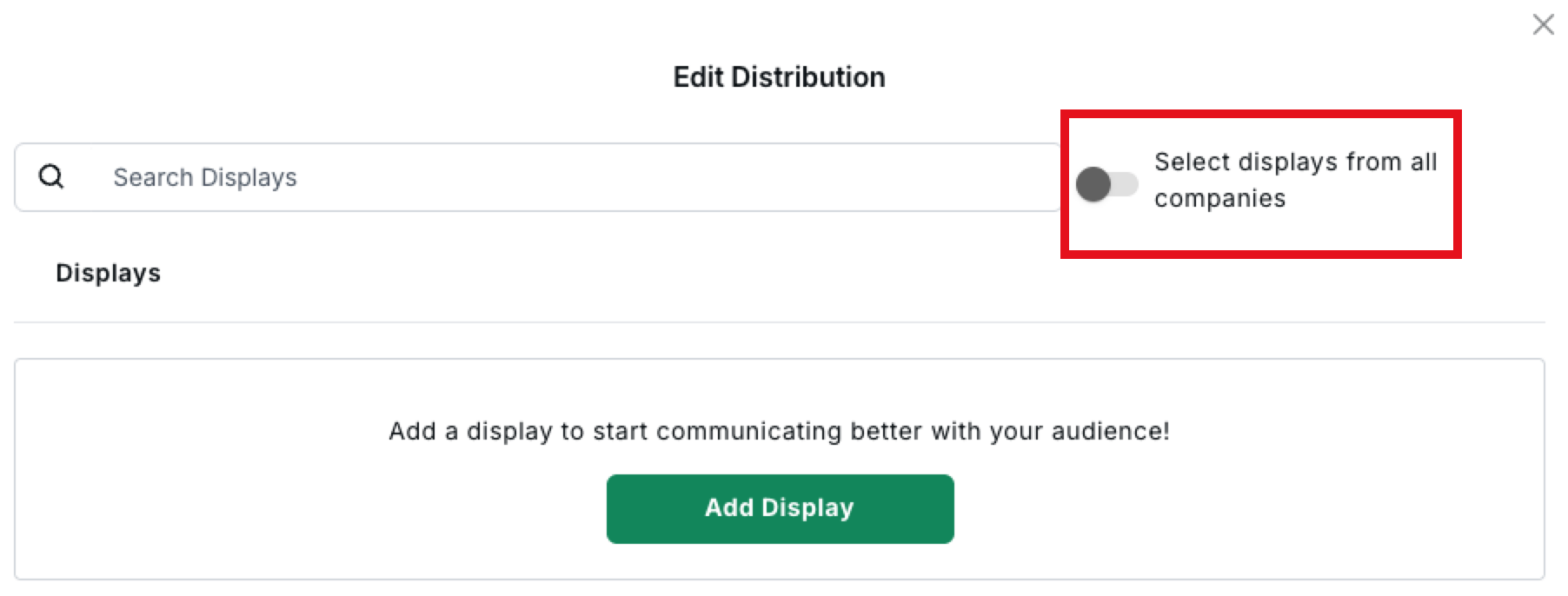 - In the Edit Distribution window, enable Select displays from all companies (top-right)