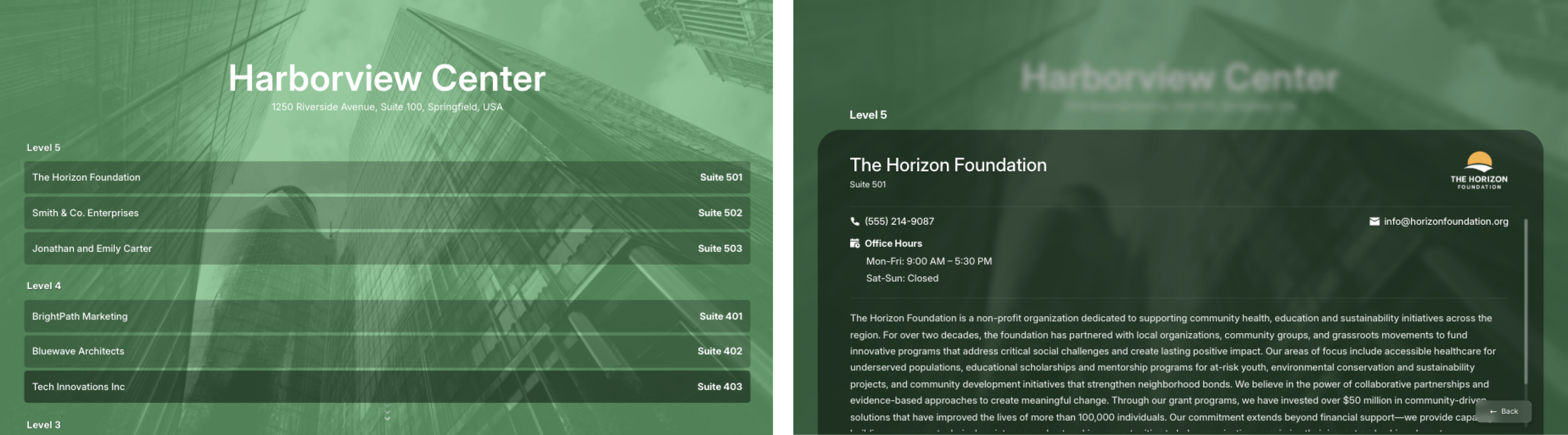 Best for: Interactive directories, welcome screens, or menu-style displays that guide viewers to specific content or sections.