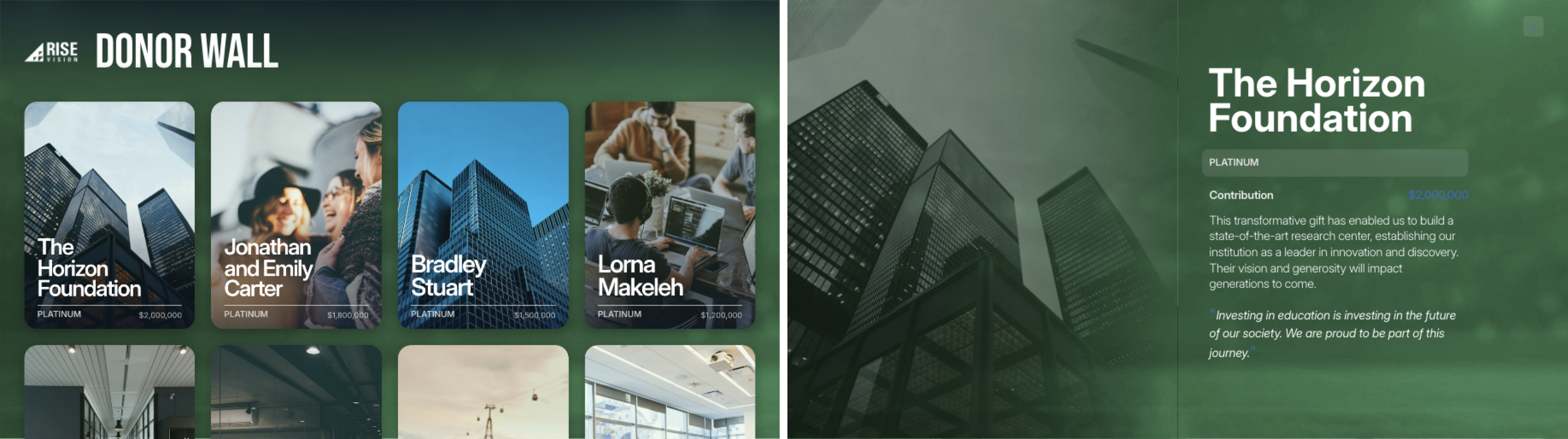 Best for: Donor walls, halls of fame, directories, or other displays that showcase individuals, organizations, or achievements.