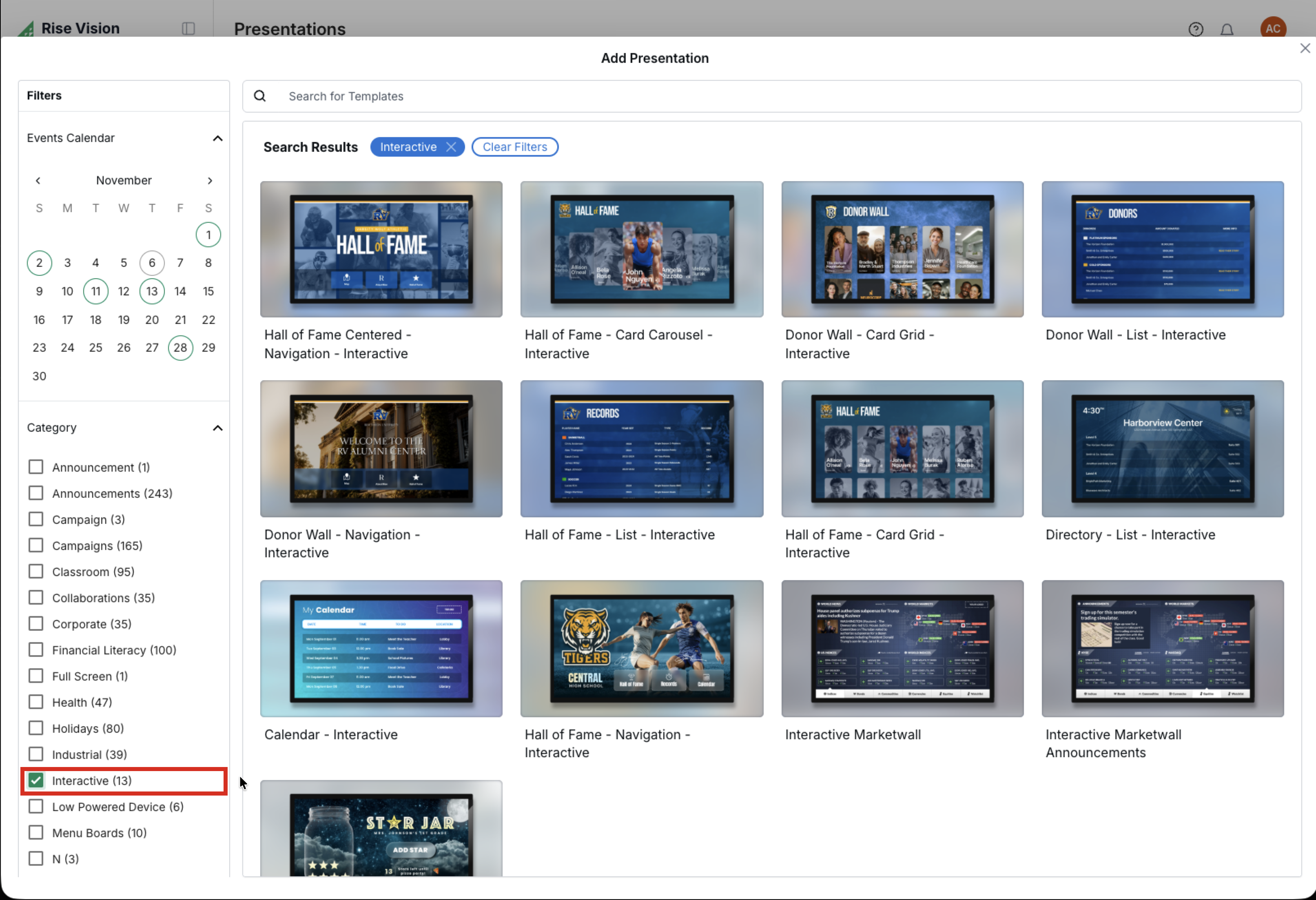 - Choose your preferred Interactive Template to add it to your account.